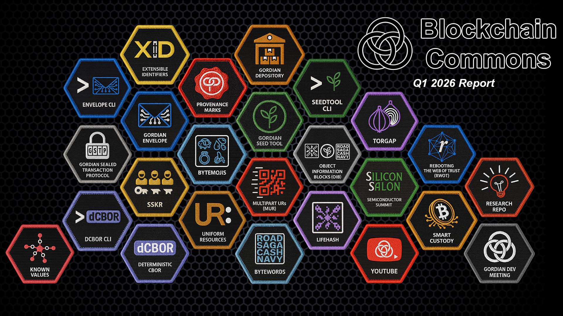 The environment for work on self-sovereign digital assets and identity continues to be rough in 2026. Due to limited resources, we expect to be focusing more in the coming year on developing, polishing, and documenting our existing work, as opposed to creating some of the exciting new technologies that we saw in 2025. That’s not a bad thing, as it’ll give us a chance to really get XIDs, Gordian Clubs, and other recent technologies into the ecosystem, alongside our already adopted specifications such as Gordian Envelope and URs.
